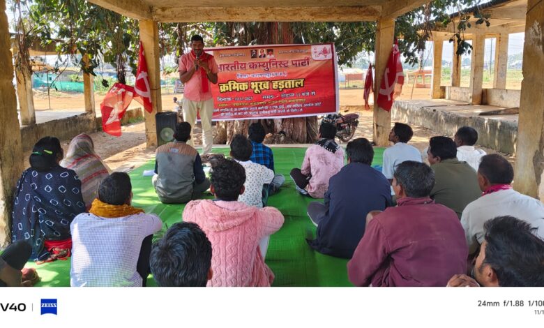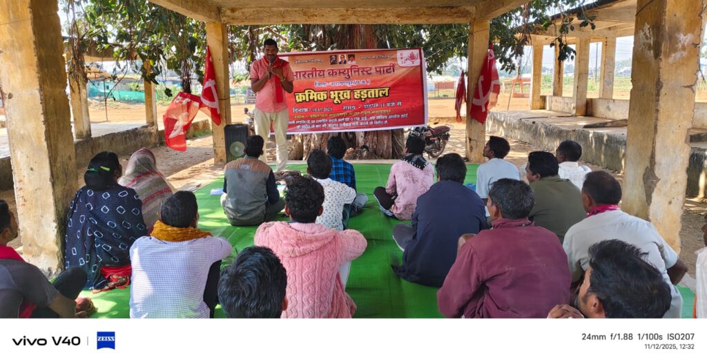 न्याय की मांग पर डटे साथी — नारायणपुर में भारतीय कम्युनिस्ट पार्टी की भूख हड़ताल तीसरे दिन भी जारी